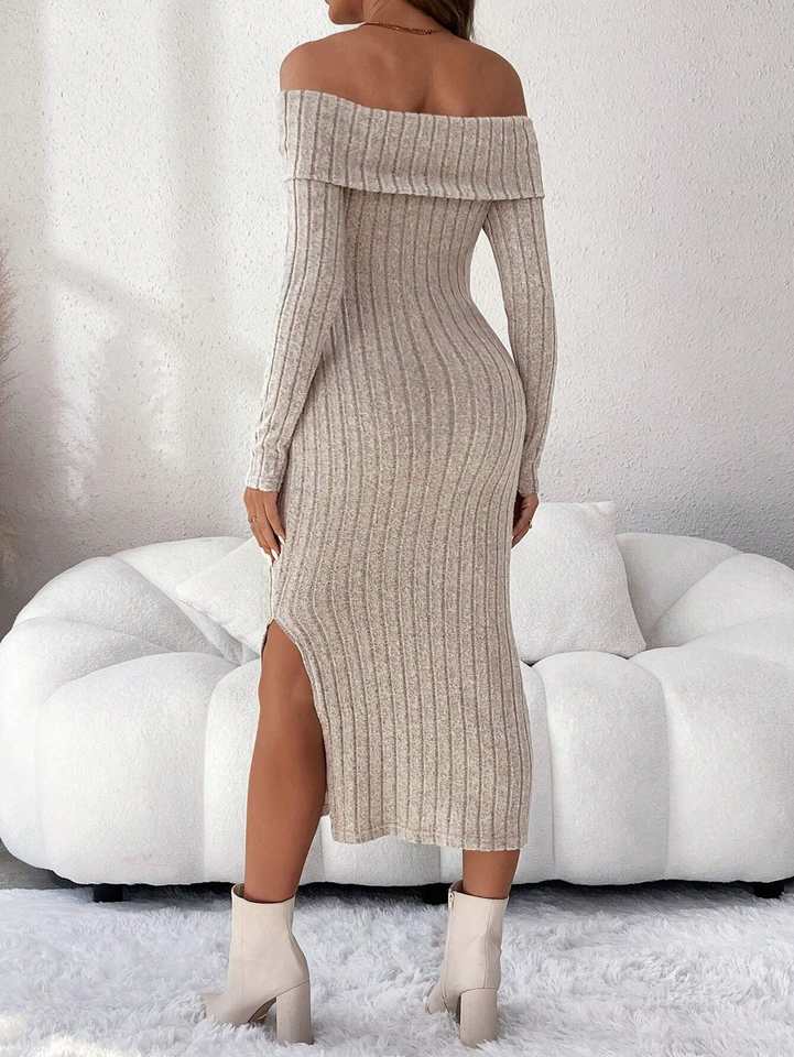Maternity Clothes Photoshoot Clothing Autumn Winter One-shoulder Slimming Body-hugging Long-sleeved Knitted Pregnant Women Dress
