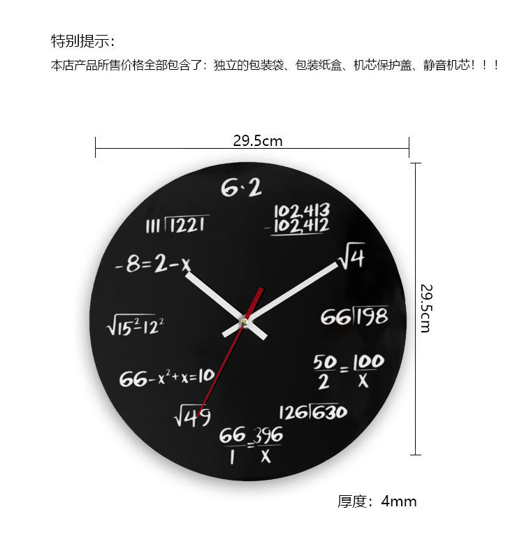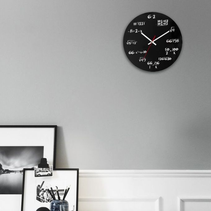 Matematica orologio da parete nero 12 pollici silenzioso senza ticchettio unico quarzo rotondo a batteria matematica equazioni orologio da parete per la casa