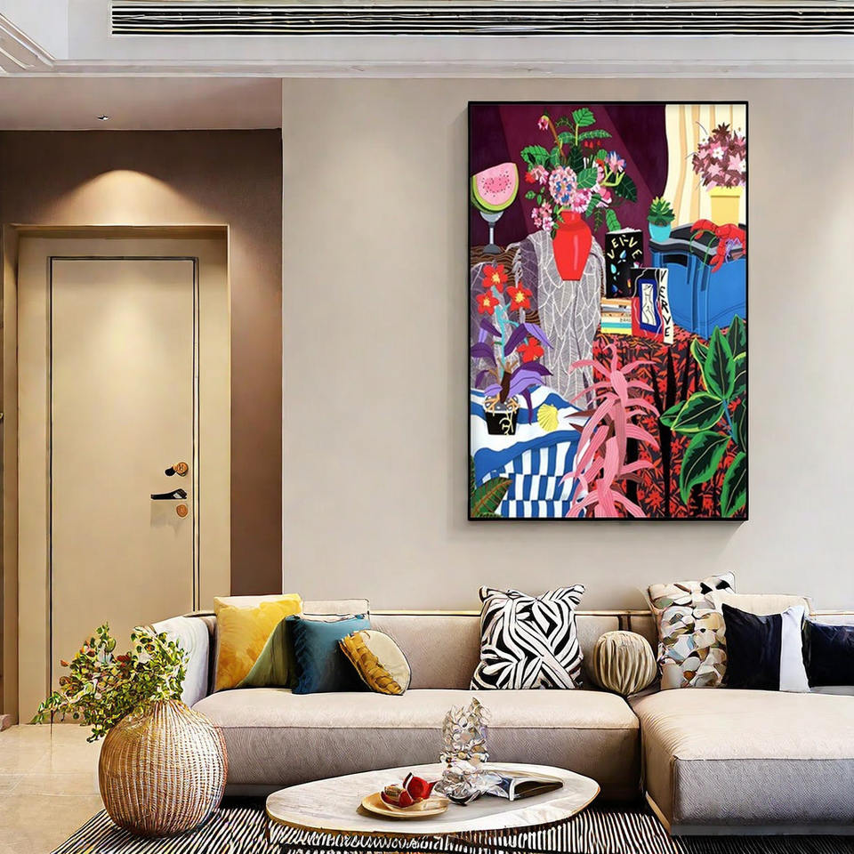 Matisse Style Modern Printed Abstract Background Canvas Hanging Paintings Eco-friendly Ink Colorful Cute Art for Living Room