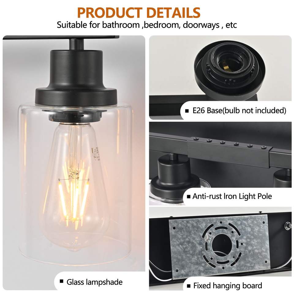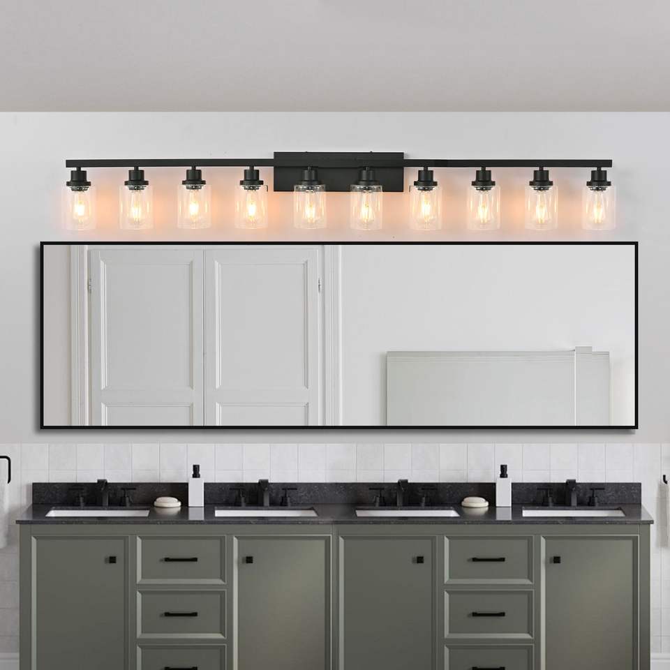 Specchio da Bagno Moderno Nero Opaco con 10 Luci e Illuminazione Integrata, 65.4 Pollici, con Finiture Nere