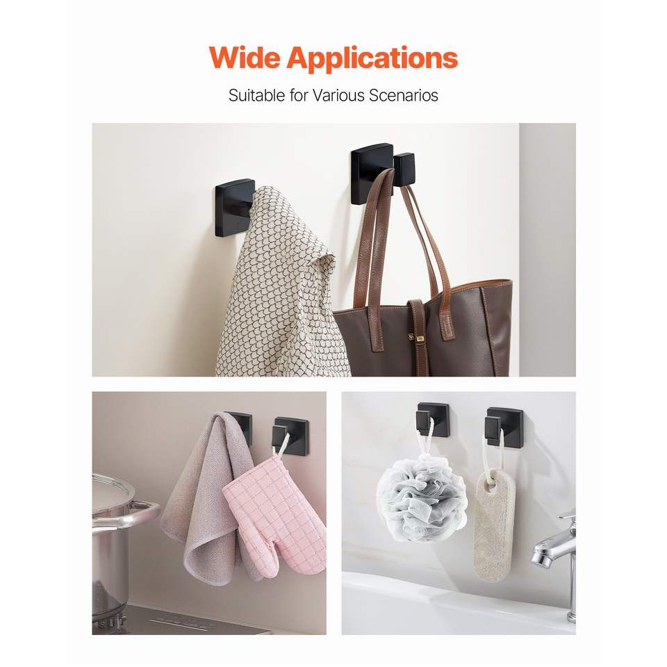 Set di Accessori per Bagno in Acciaio Inox Nero Opaco, 10 Pezzi, con Portasciugamani da 24 Pollici, 2 Porta Asciugamani e 4 Porta Accappatoi