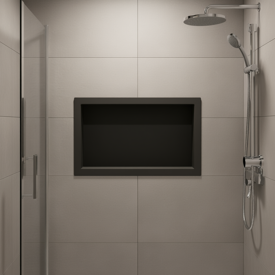 Matte Black 16.1x20.1x3.9 Shower Niche Bathroom Shelf Recessed Waterproof Plastic Minimalist Design
