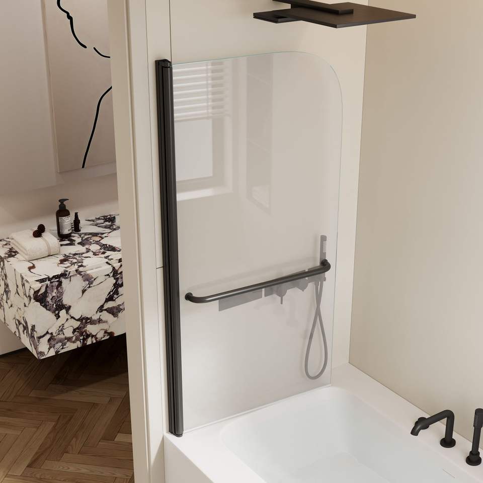 Nero opaco 30 In. W X 58 In. H alzata asta di rotazione porta singola doccia porta in vetro per bagno vasca 1/4 \ "(6mm) di spessore SGCC