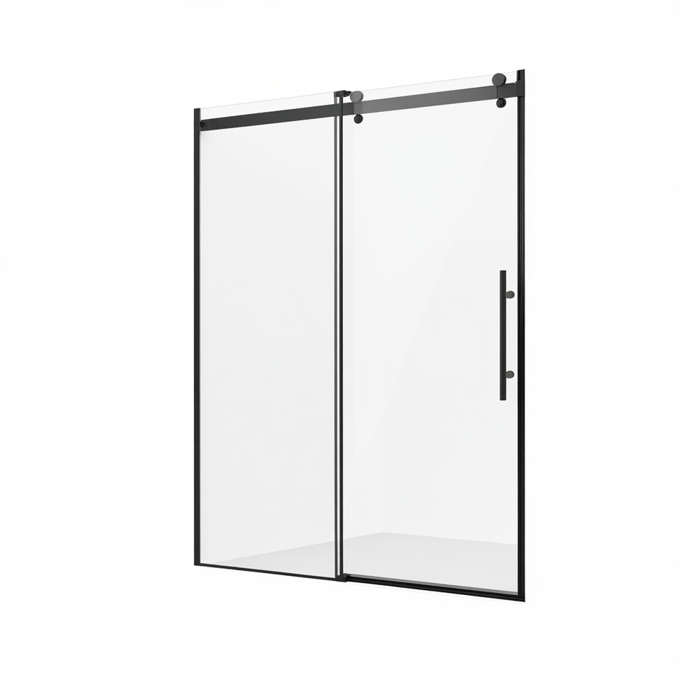 Frameless Shower Door 58-59 X 75 In Clear Tempered Glass Sliding Matte Black