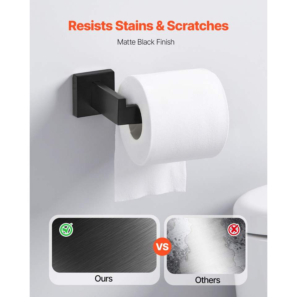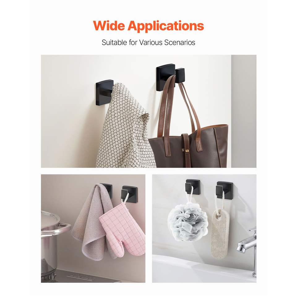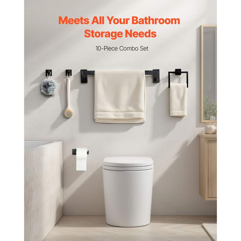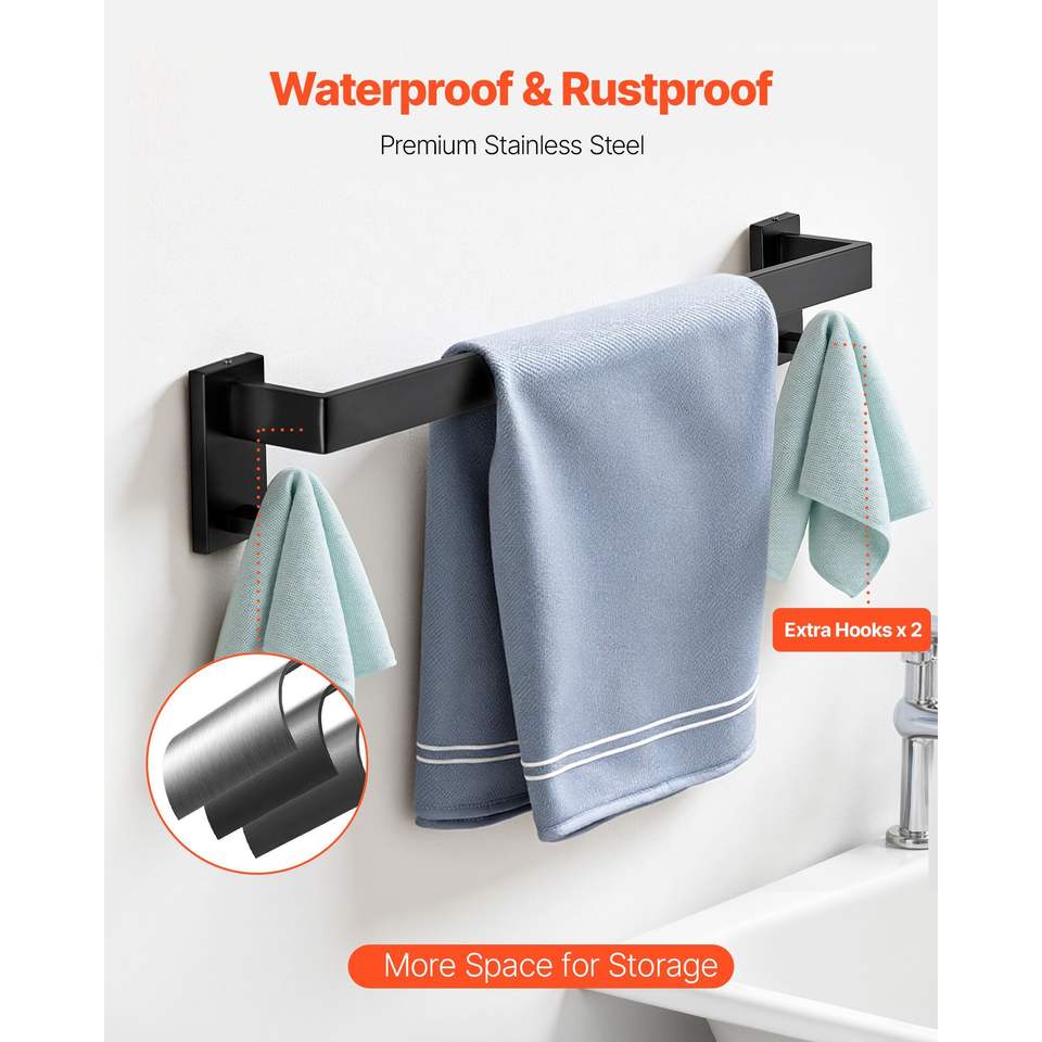 Set di Accessori per Bagno in Acciaio Inox Nero Opaco, 5 Pezzi, Portasciugamani da 60 cm e 2 Ganci per Accappatoio, Accessori di Qualità