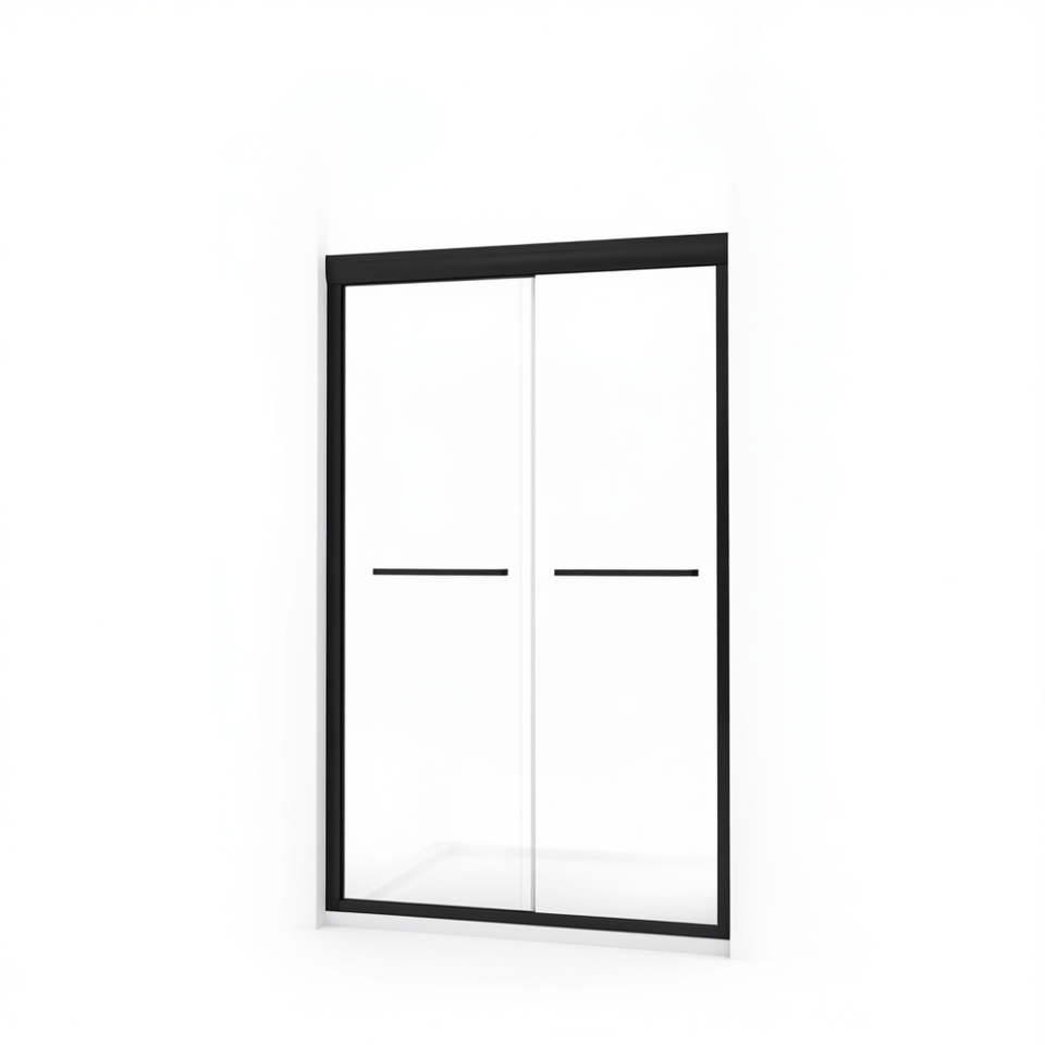 Porta Doccia Scorrevole Doppia Nero Opaco 48L X 76A con Telaio in Vetro Temperato 6mm Design Minimalista