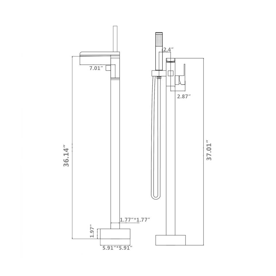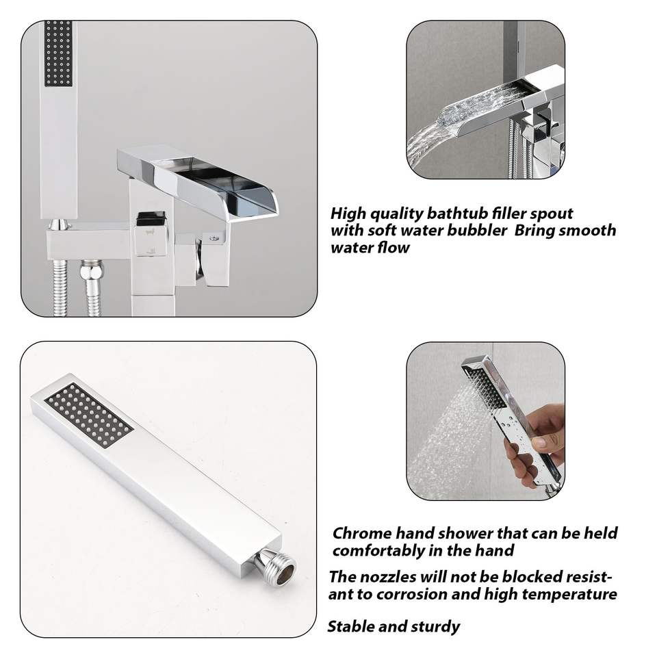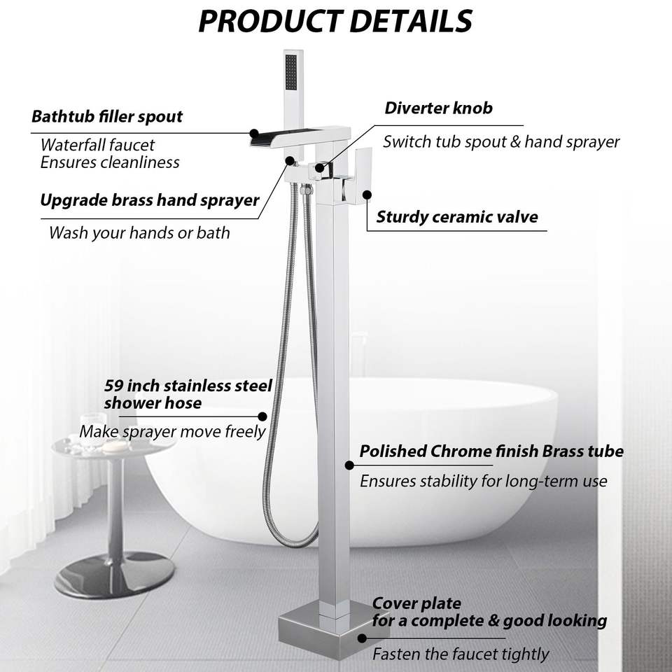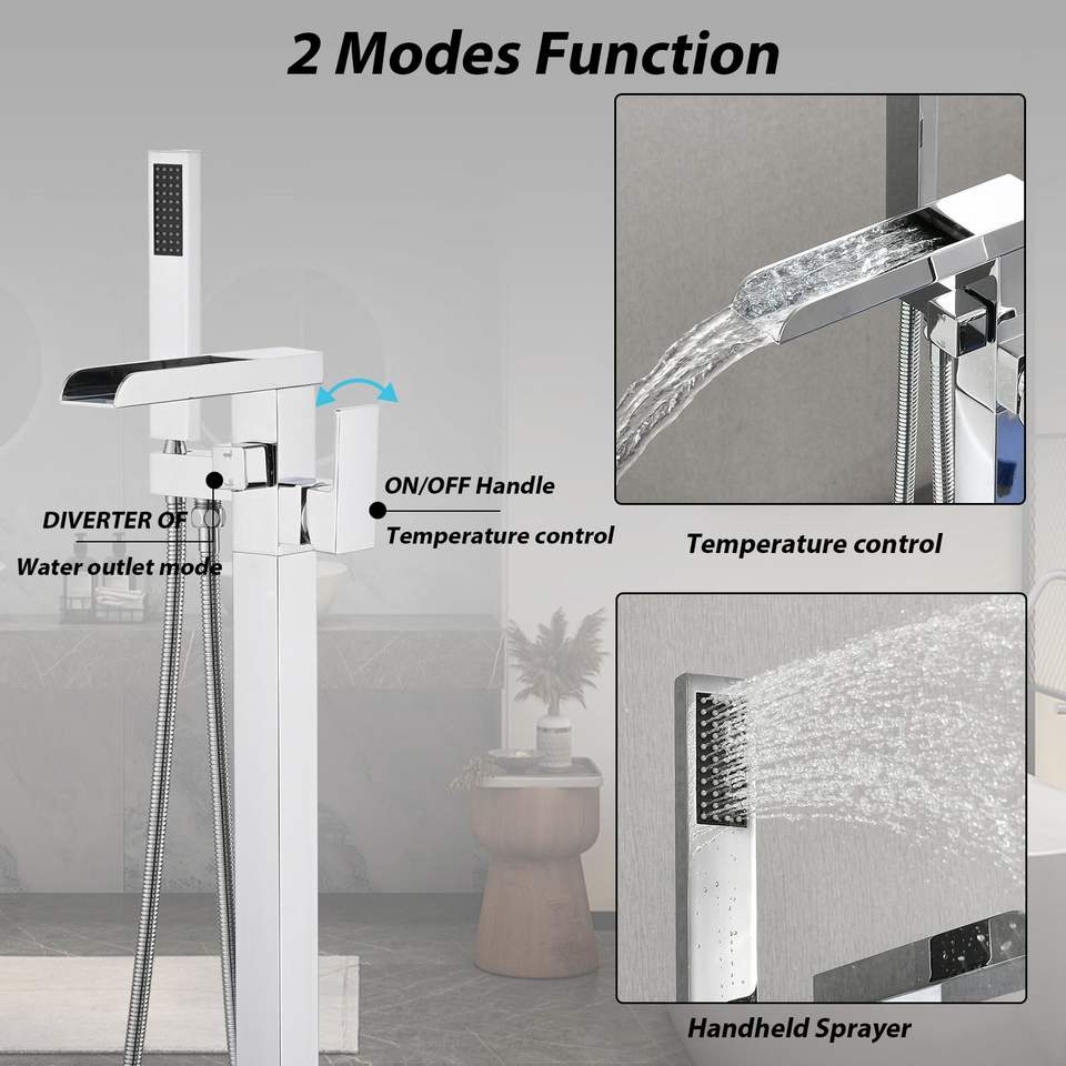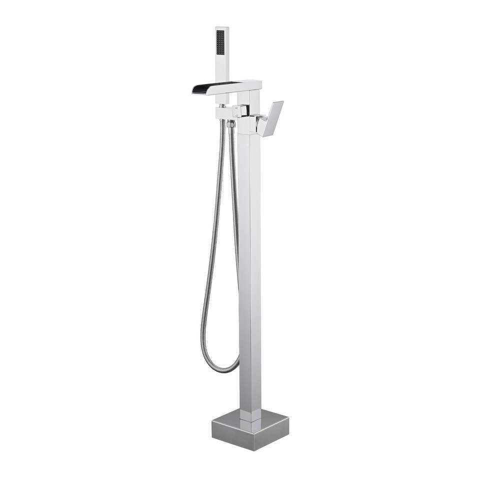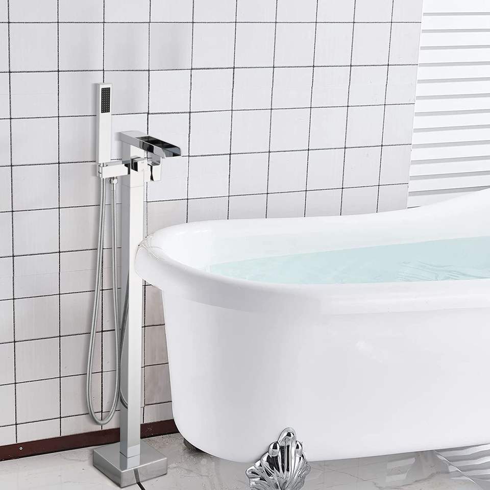 Rubinetto da Bagno Nero Opaco Autoportante con Cascata e Doccetta, Montaggio a Pavimento