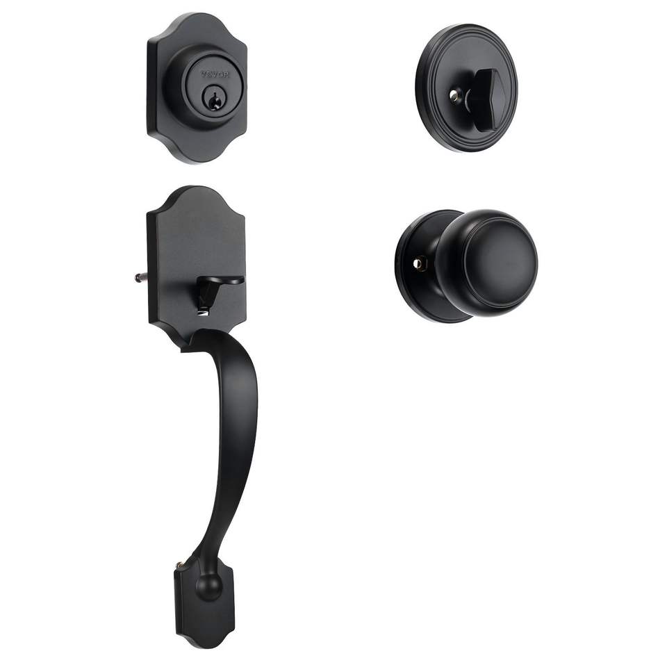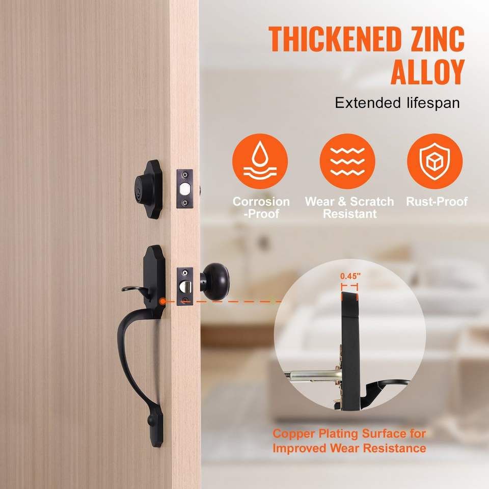 Matte Black Front Door Handle Deadbolt Set Interior Knob Adjustable Hole Spacing Single Cylinder Handleset for Right Left Locks