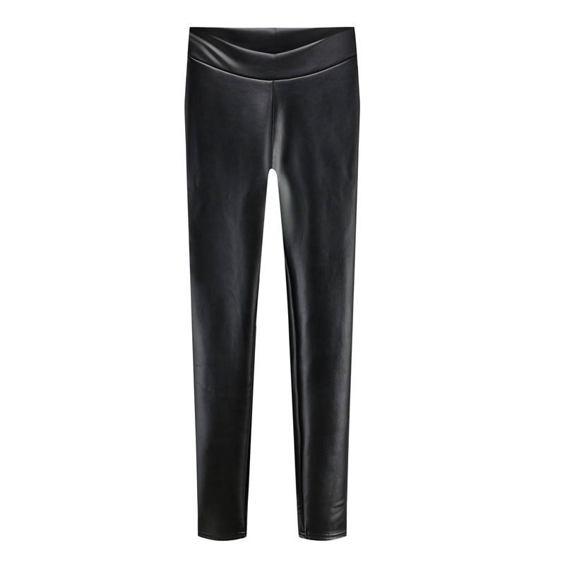 Leggings in finta pelle sintetica con vita elastica di alta qualità nera opaca per la collezione primavera pantaloni elasticizzati Plus maglia cucita