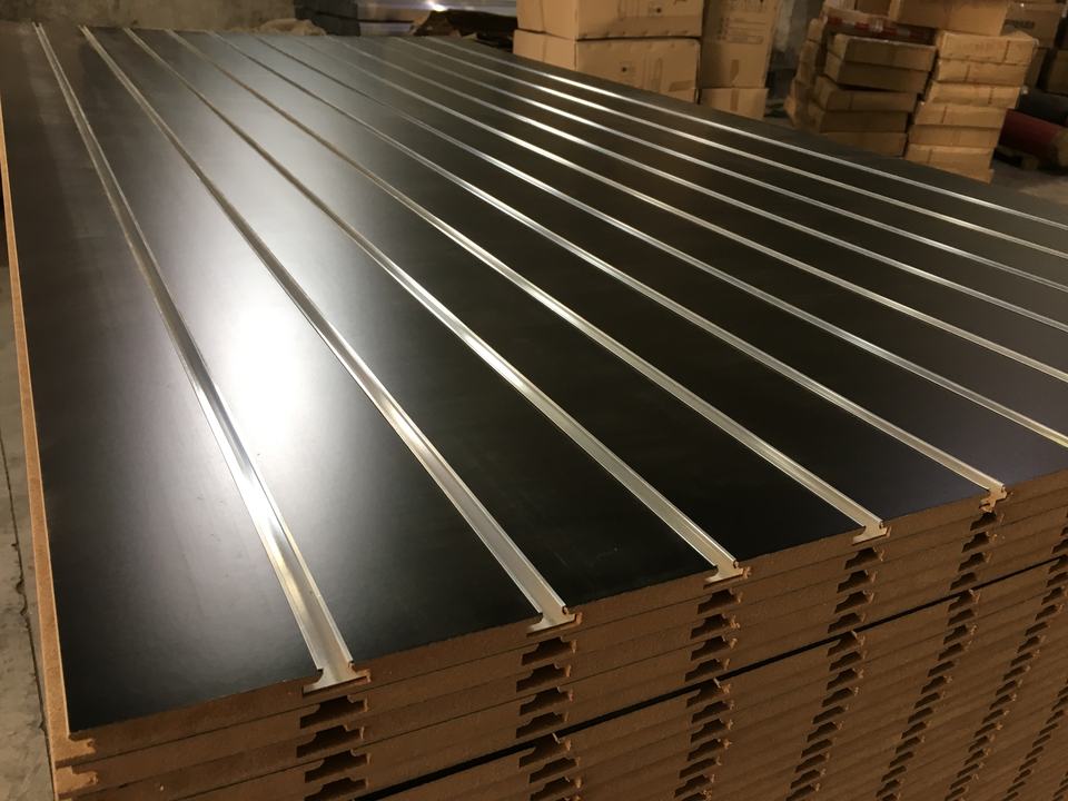 Pannello Slatwall in MDF Nero Opaco 18mm/Espositore a Parete con Fessure in Stile Semplice/Scaffali per Supermercato