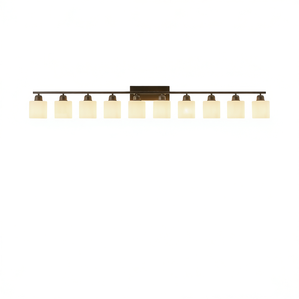 Modern 10-Light Bathroom Vanity Light 65.4 Inch Matte Black Metal LED Warm White Glass Shades Surface Mounted Mirror Lamp