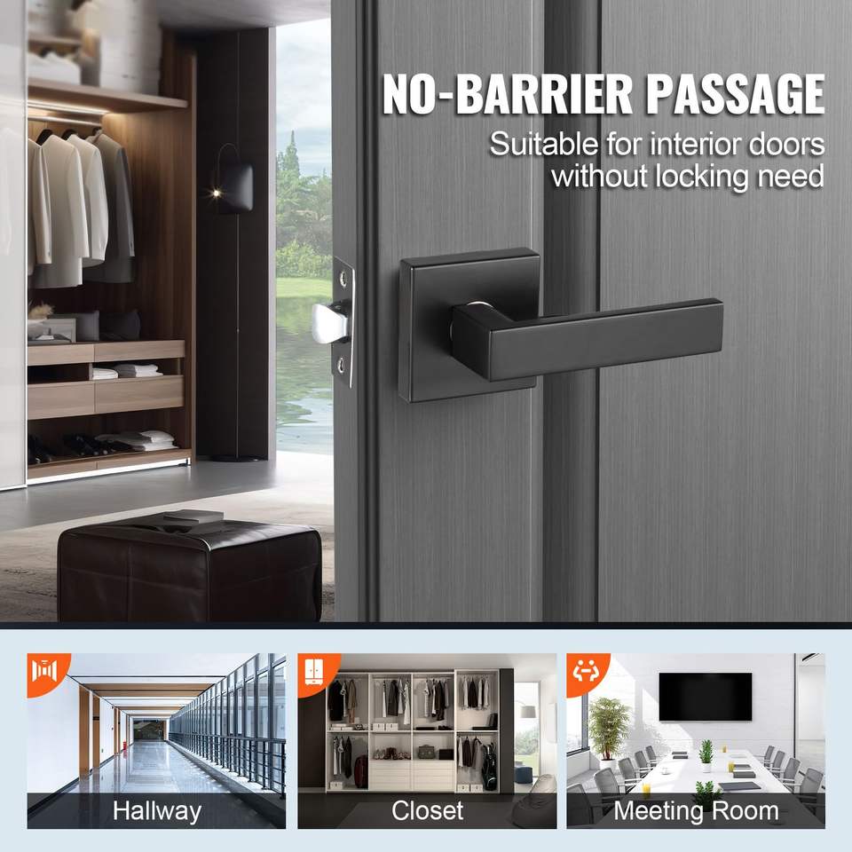 Maniglia per Porta Passante Nera Opaca, 1 Pezzo, Reversibile con Rotazione a 45 Gradi, per Utenti Mancinoli e Destrorientati, Senza Blocco