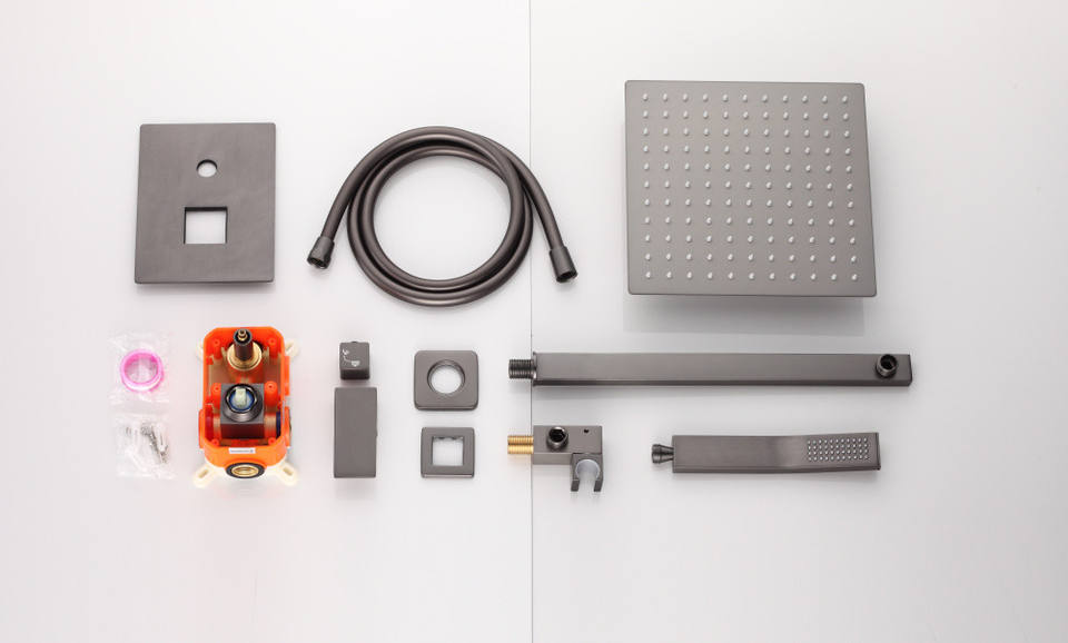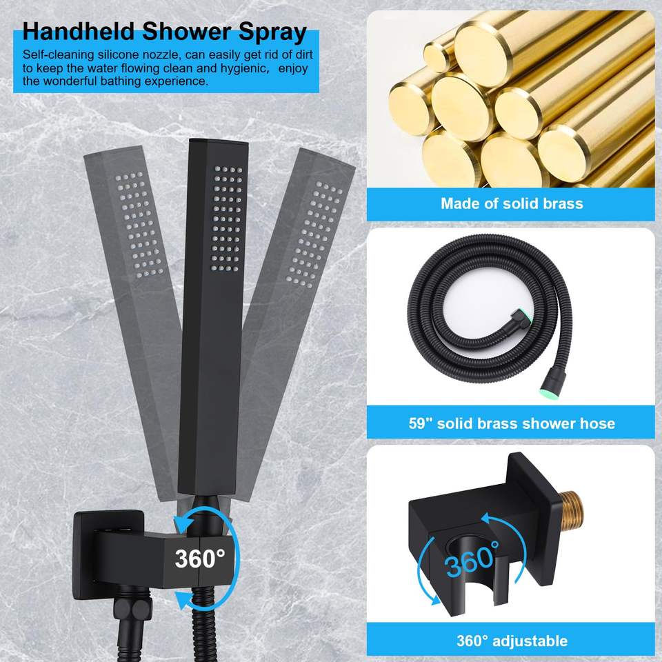 Rubinetti a pioggia nero opaco Set doccia a soffitto con sistema di rivestimento per vasca da bagno termostatico singolo portatile
