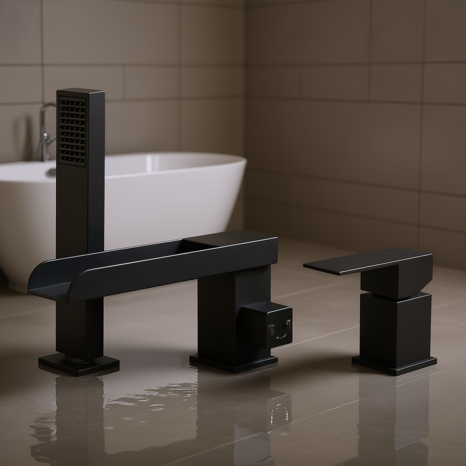Roman Tub Faucet Matte Black Waterfall 3-Hole Widespread Single Handle Bathtub Fixture Adult Use