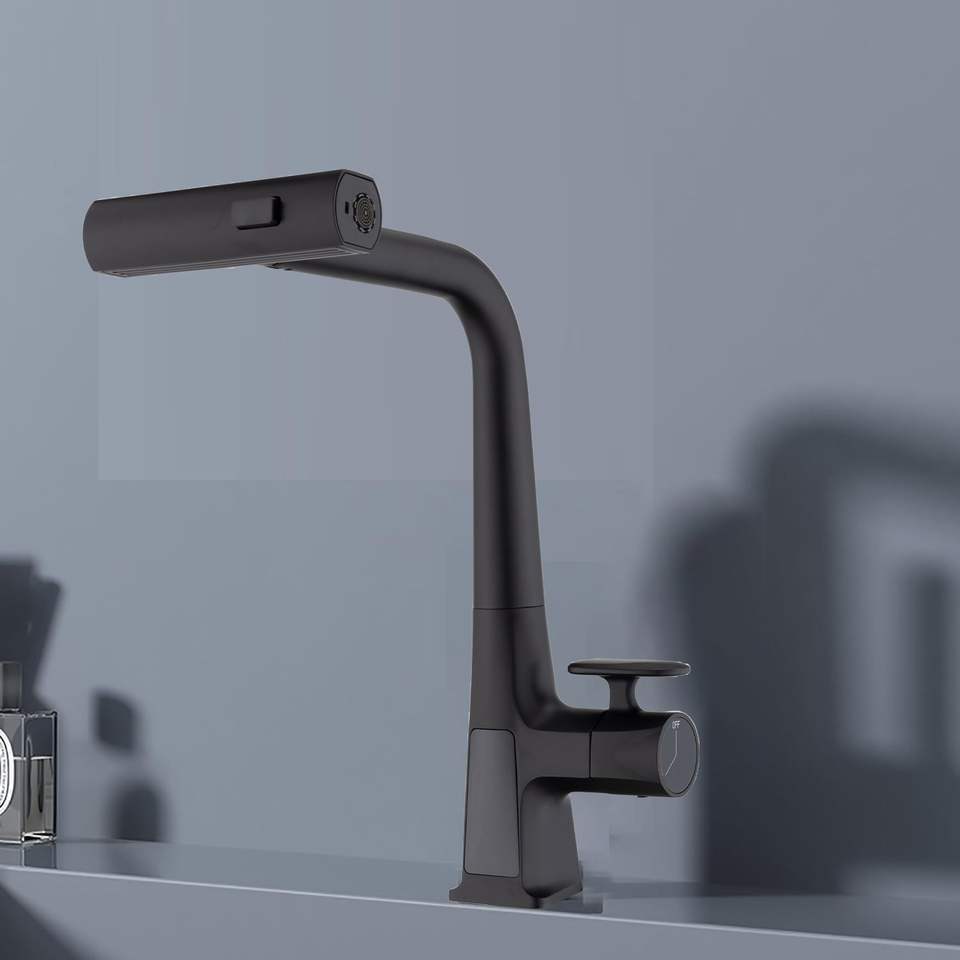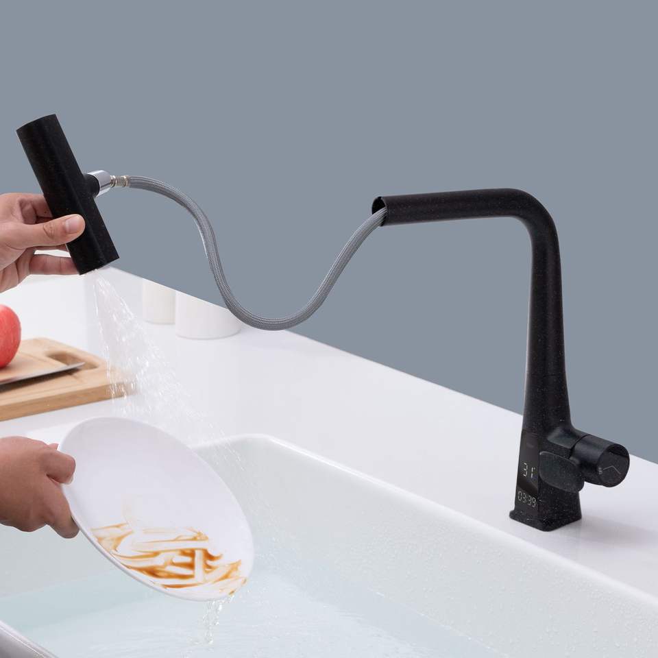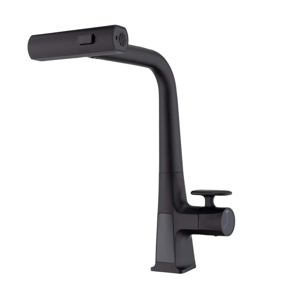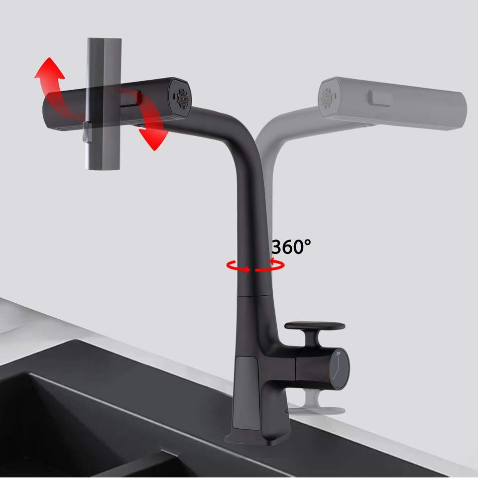 Rubinetto da Cucina Nero Opaco Monocomando con Display Temperatura, Design Moderno a Cascata e Doccetta Estraibile