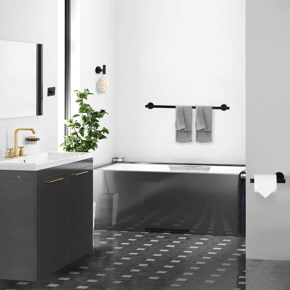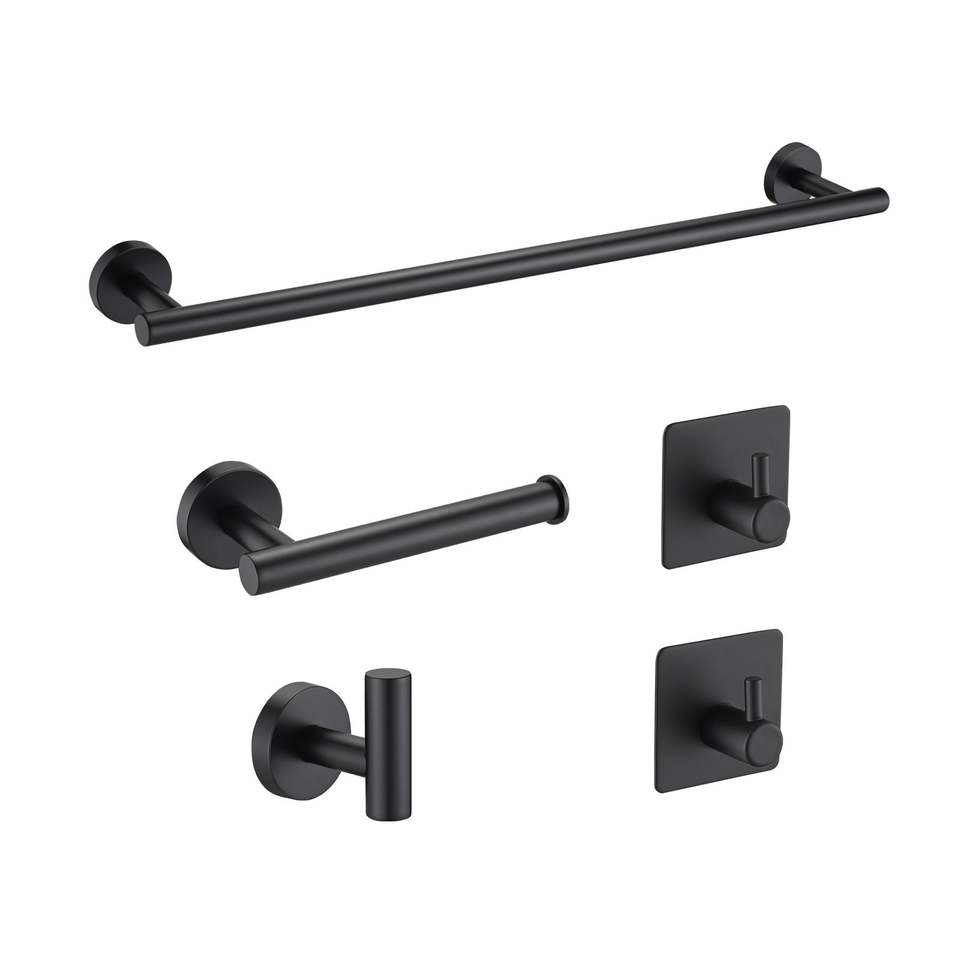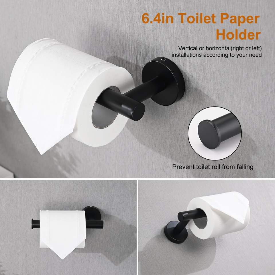 Set di Accessori per Bagno in Acciaio Inox Nero Opaco Include Portasciugamani da 16 Pollici, Portarotolo, Ganci Appendiabiti per Stile Moderno