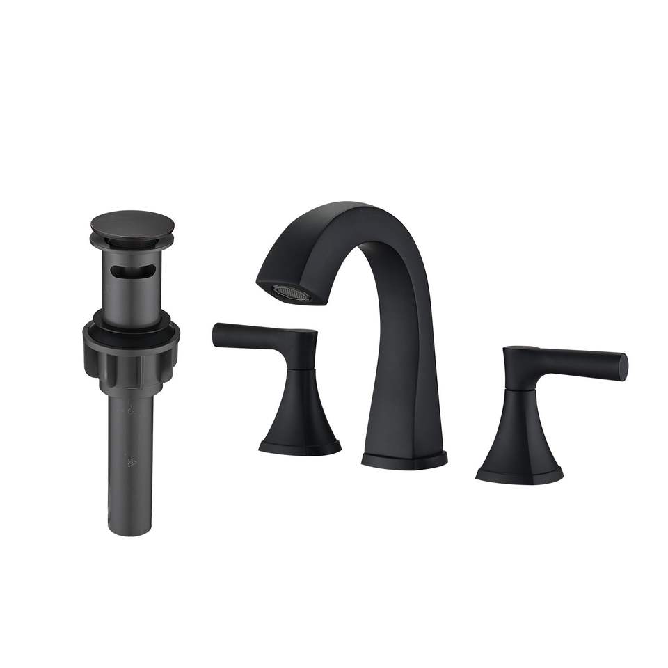 Rubinetto da Bagno Nero Opaco a Due Maniglie con 3 Fori e Gruppo Scarico, Rubinetteria per Lavabo da Bagno a Montaggio Ampio