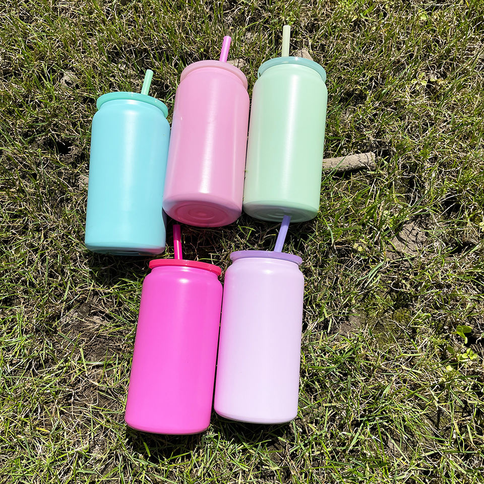 Lattina in acciaio inossidabile macaron con isolamento sottovuoto opaco da 16 once con coperchio e paglia per sublimazione e involucri UV DTF