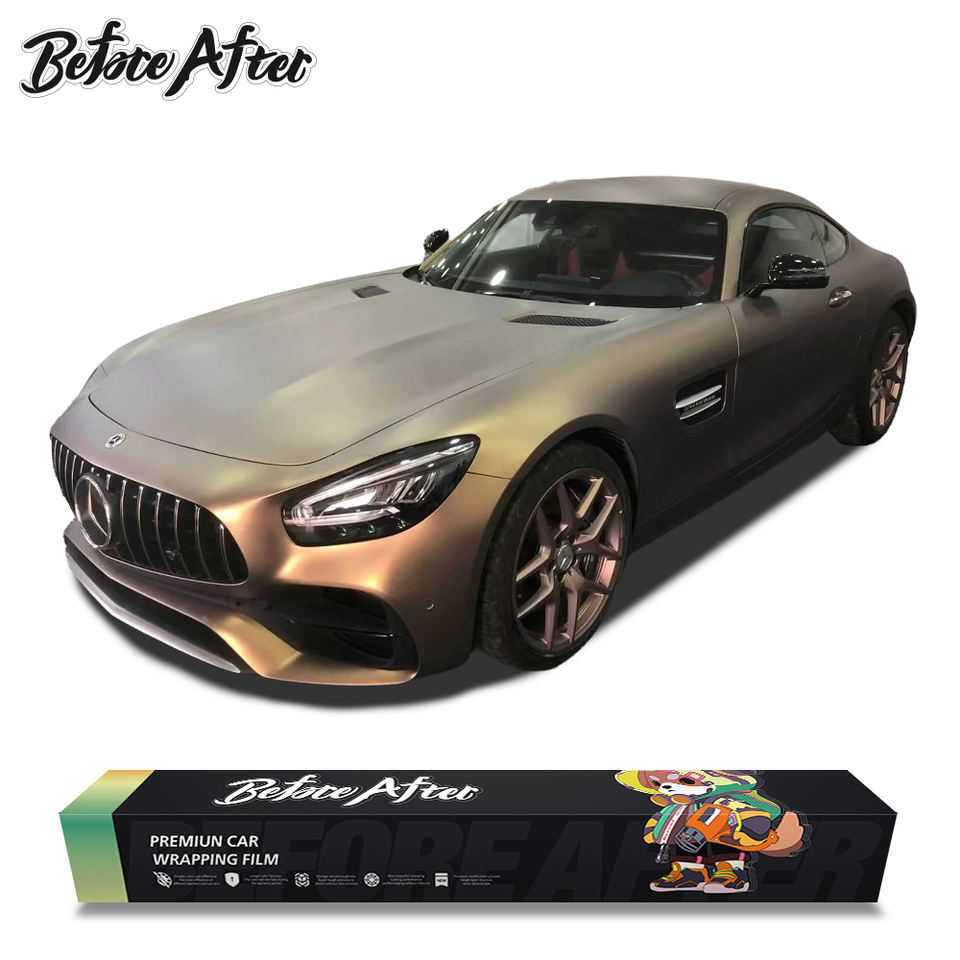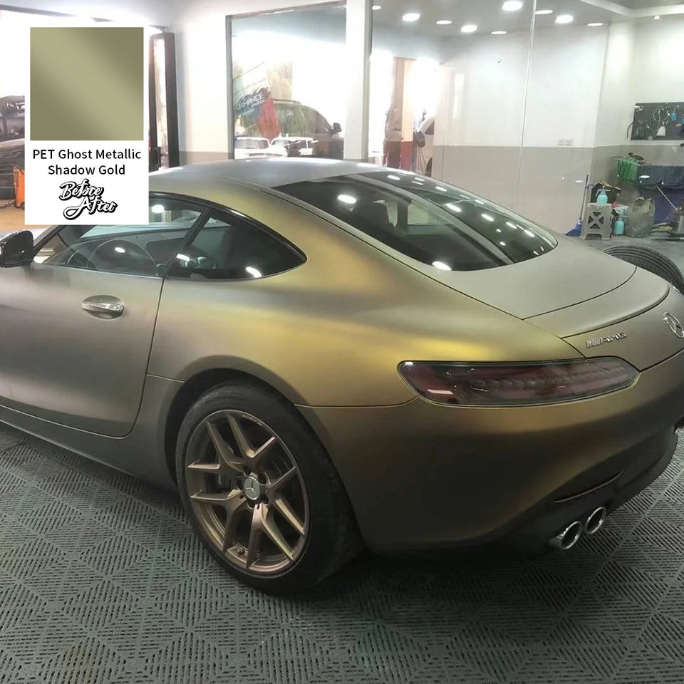 Matte Metallic PET Ghost Metallic Shadow Gold Anti-scratch 1.52m*17m Vinyl Gold Car Wrap Vinyl Film