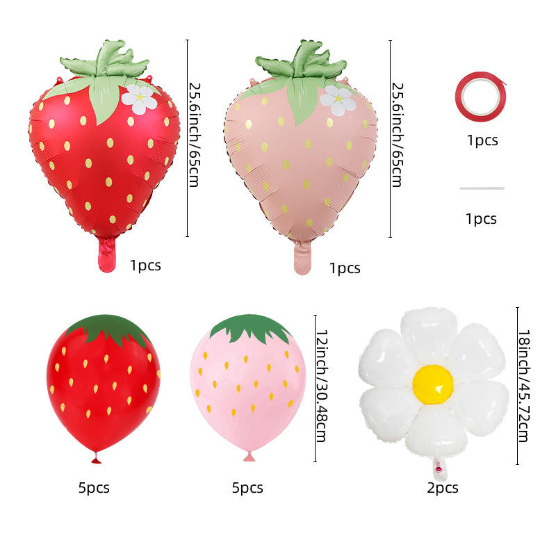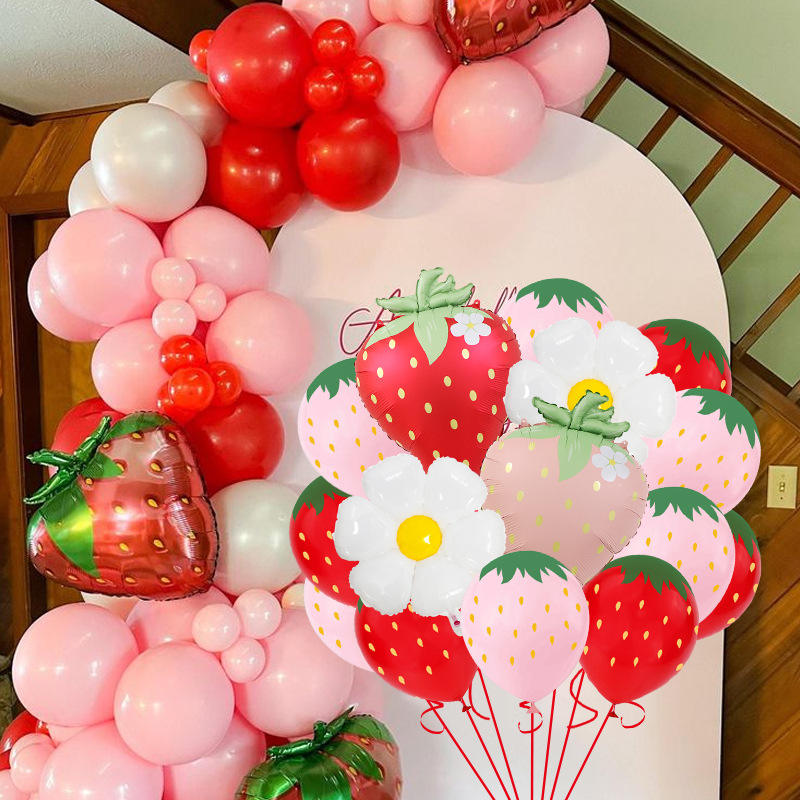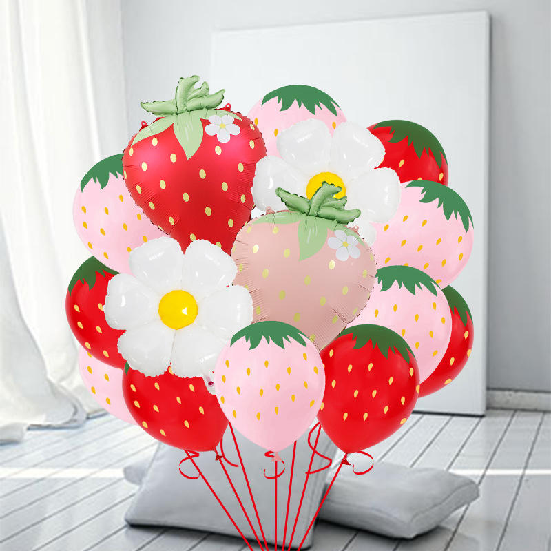 Palloncini opachi in lamina di alluminio fragola impostati nuovo tema di frutta disposizione di Halloween con stampa margherita fiore d'uovo