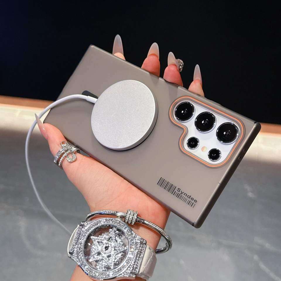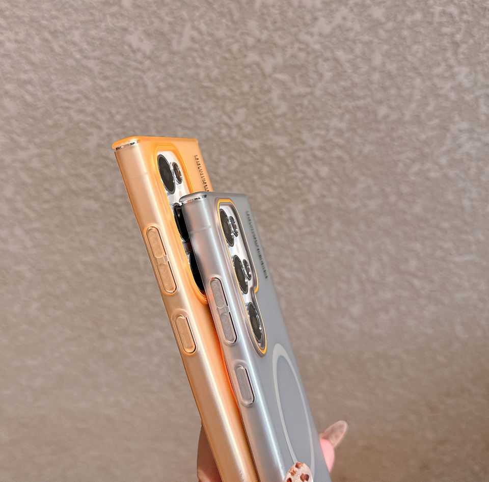 Custodia per telefono opaca traslucida per PC con pelle magnetica per Samsung S22 S23 S24 S25 Ultra rigida con ricarica Wireless Cover antiurto