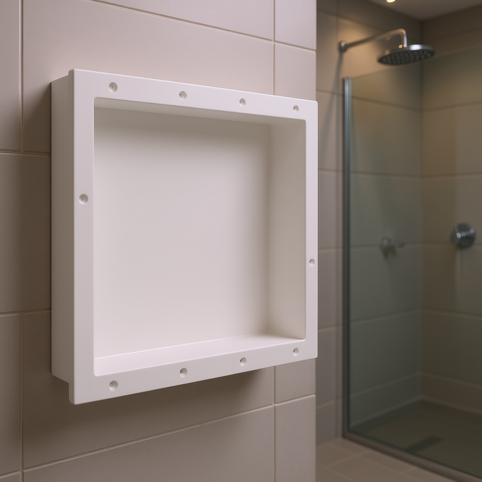 White Recessed Shower Niche 16.1x20.1x3.9 In Plastic Bathroom Shelf Waterproof Single Tier