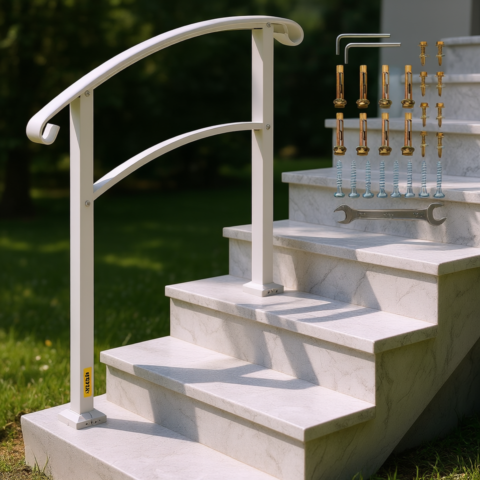 Kit Corrimano in Ferro Battuto Bianco Opaco a 3 Gradini per Esterni con Facile Installazione per Scale