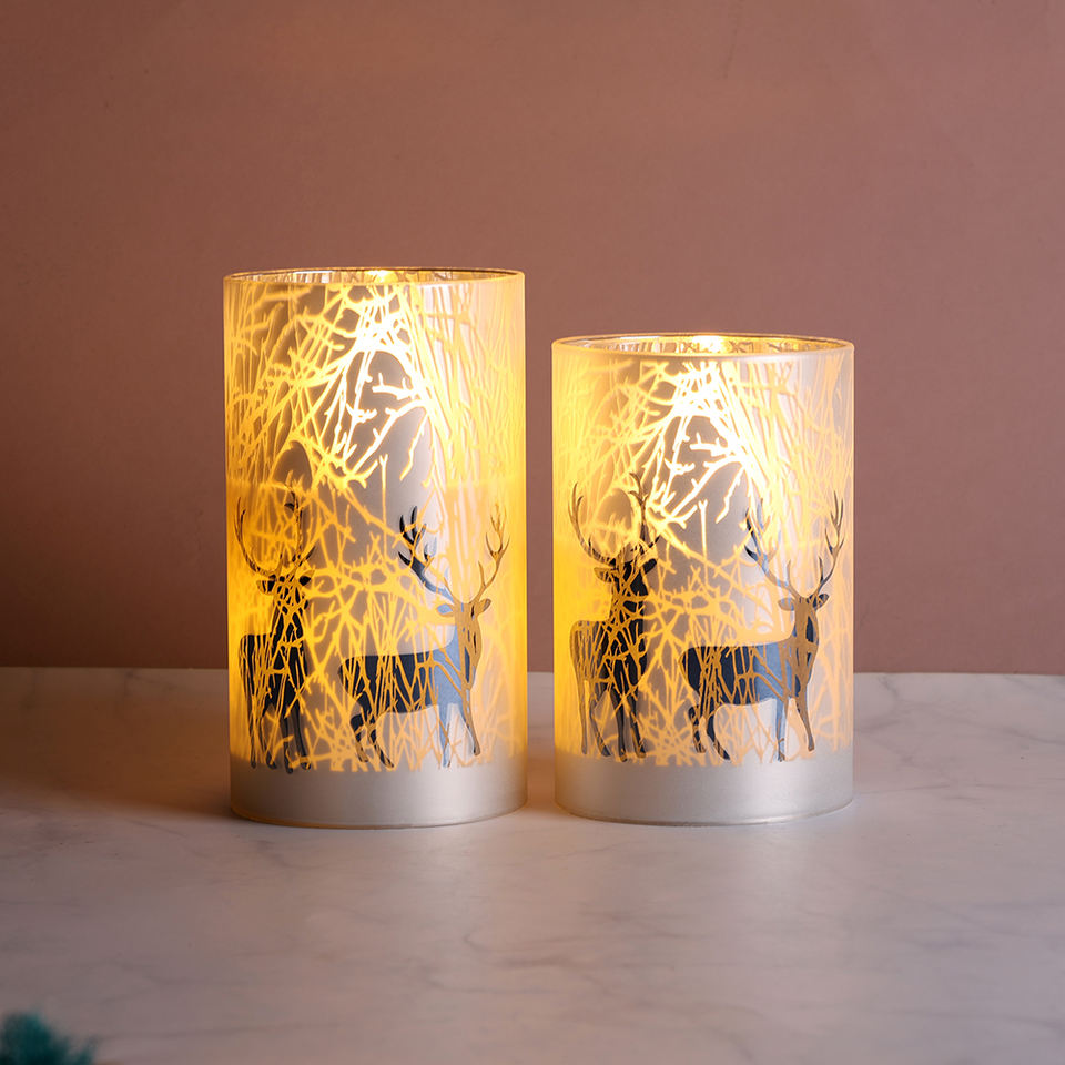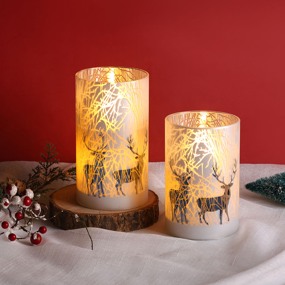 Candela LED in Vetro Rosso con Fiamma 3D Realistica a Batteria, Decorazione Natalizia a Forma di Cervo di Matti, Telecomandabile