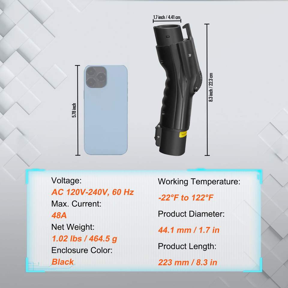 Adattatore di ricarica J1772 da 48 Amp 240V per Tesla con borsa di stoccaggio IP65, blocco anti-caduta e connettori Hi EV