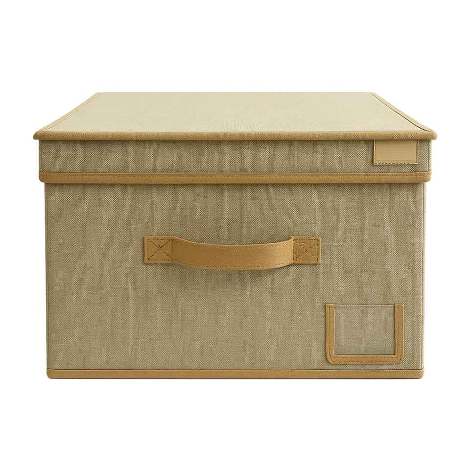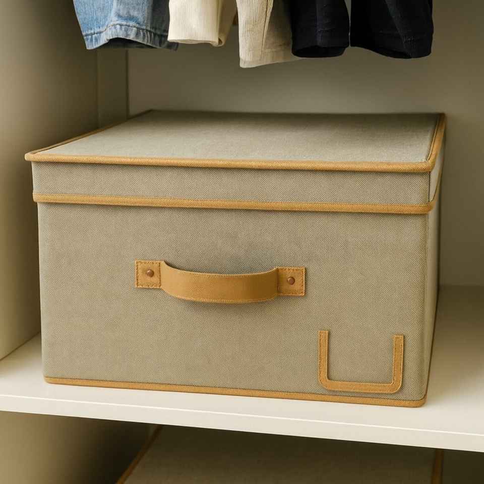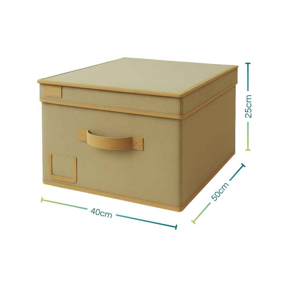 Maxi Closet Organizer Box 50x40x25 cm Beige Fabric Foldable with Lid and Handle Space-Saving Storage Bin