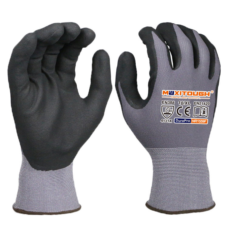 MaxiTough Wholesale China Manufacturer Factory Construction Microfoam Nitrile Oil Resistant Mining Safety General Working Gloves