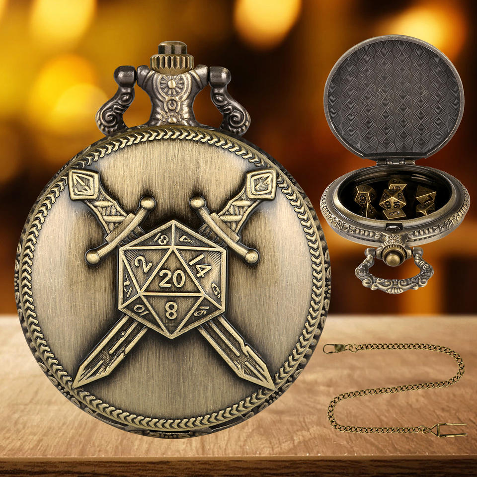Orologio da Tasca Maxmax con Dadi Nascosti, in Metallo e Acrilico, Oro e Argento, per Dungeons and Dragons, Giochi di Ruolo e da Tavolo, Mini Dadi