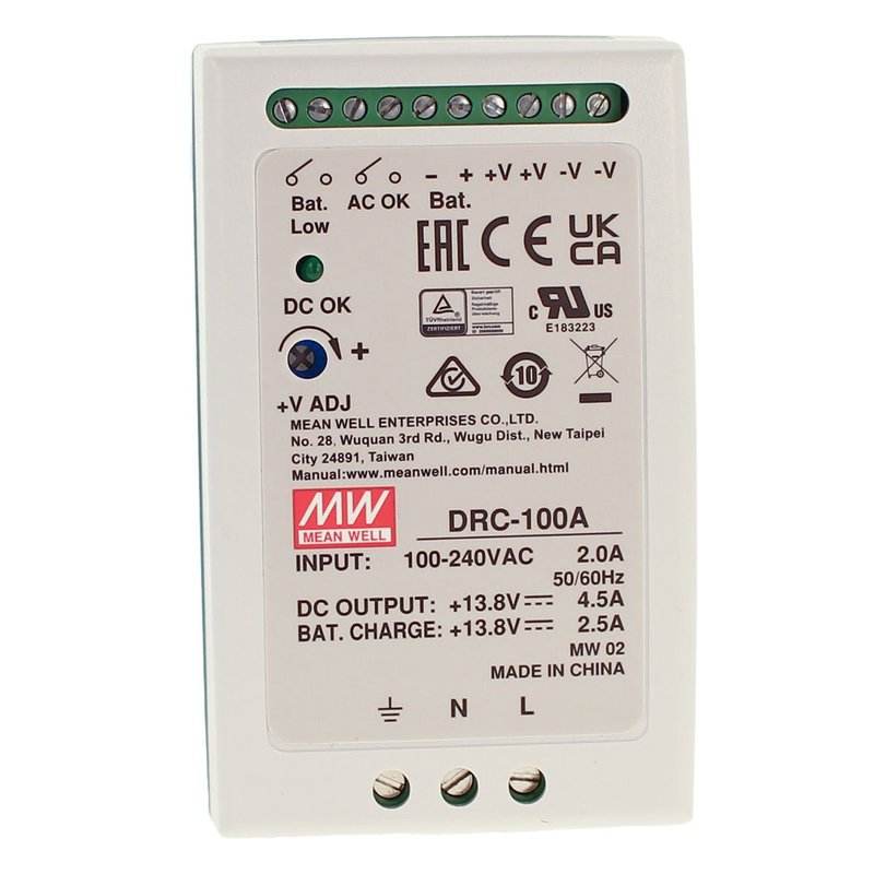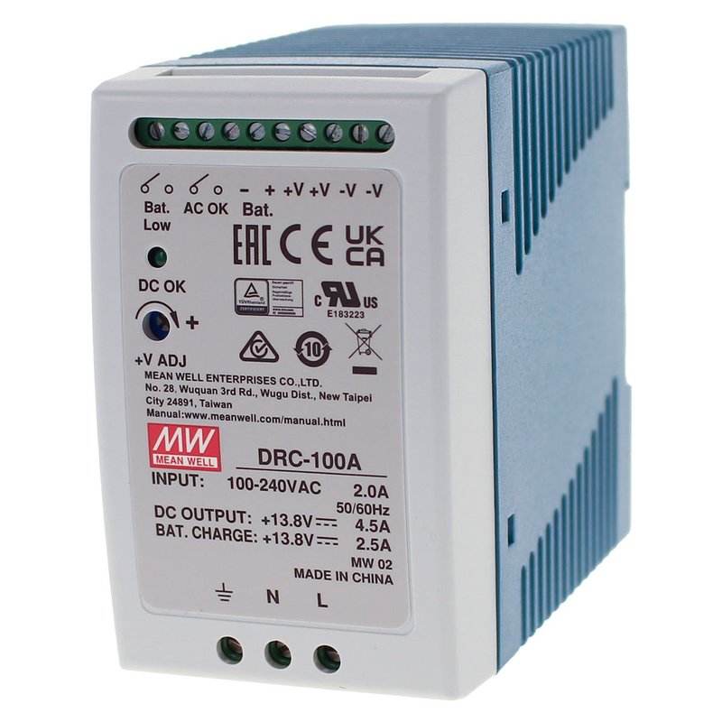 Mean Well MW DRC-100A 100W DIN Rail Mount AC/DC Industrial Power Supply with 12Vdc 4.5A UPS Battery Charging Output
