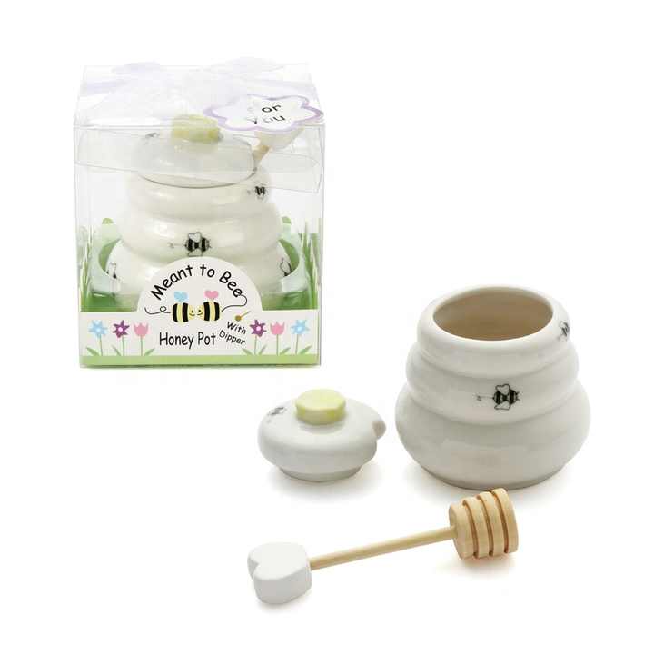 Meant to Bee White Ceramic Honey Pot With Lid Set Gift for Wedding Baby Shower Party Favor Gifts Souvenir