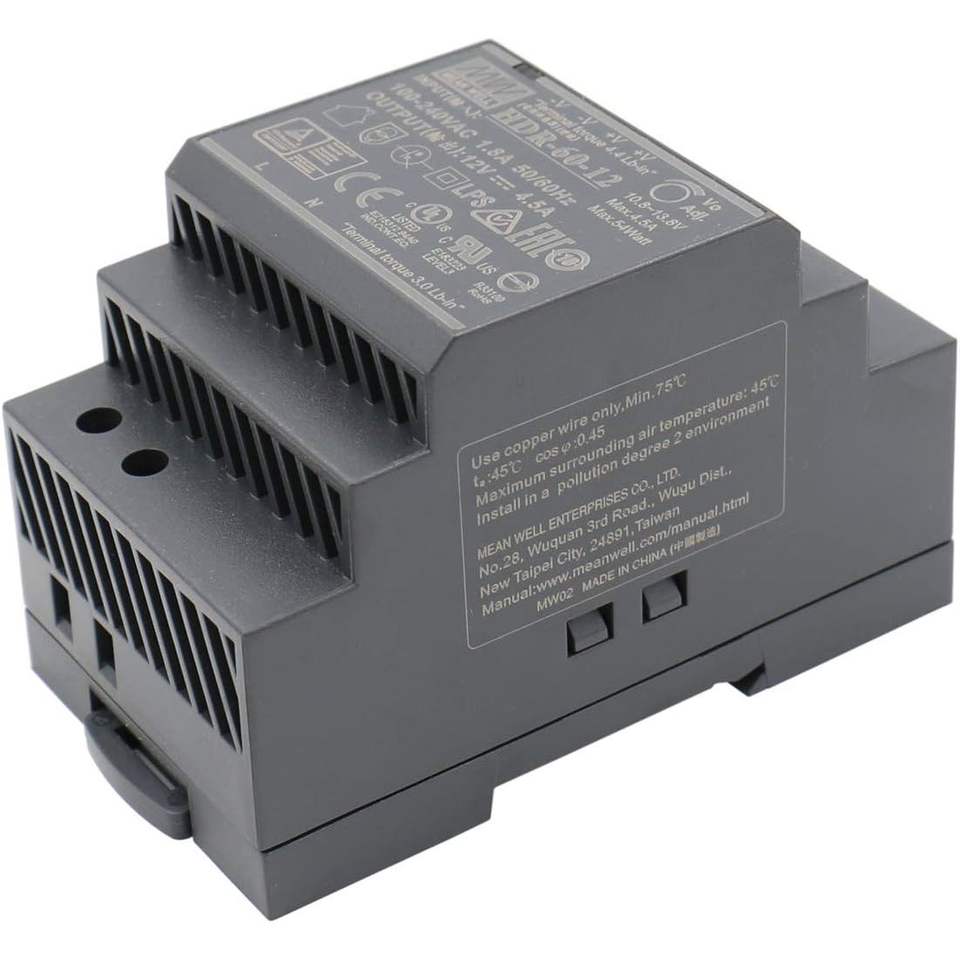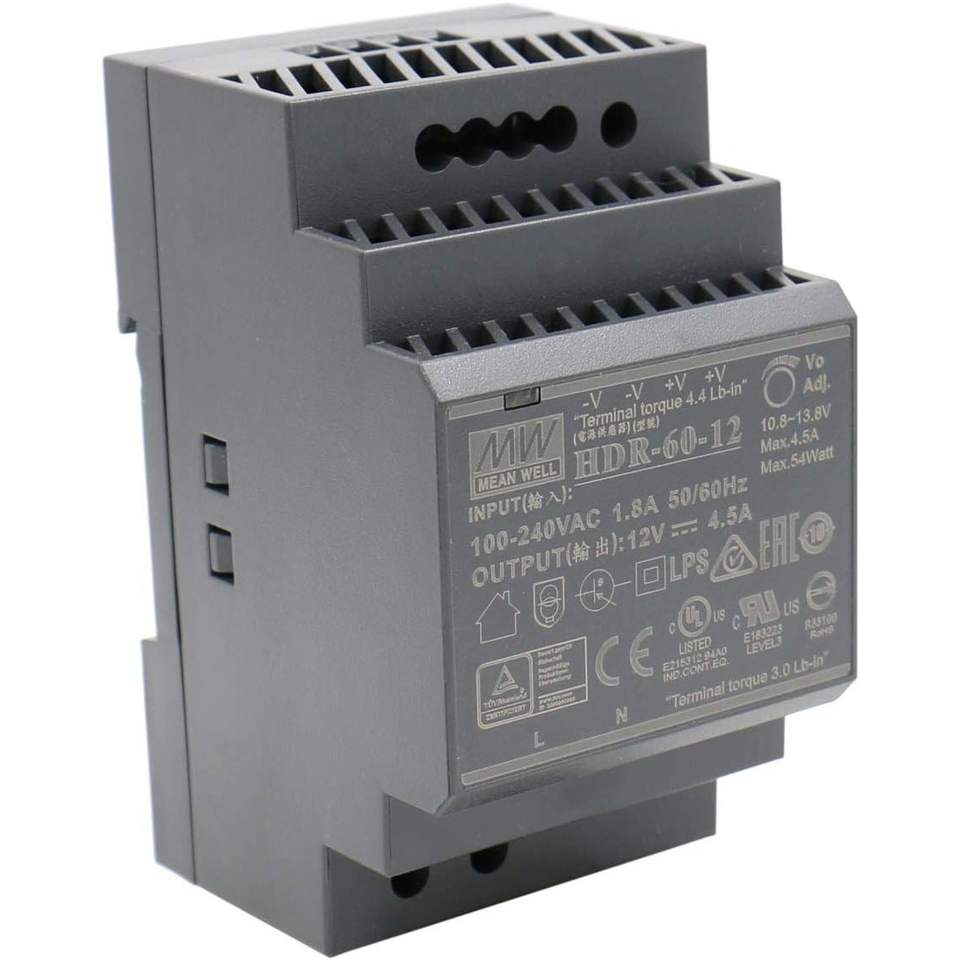 Meanwell HDR-60-12 60W 12V 5A DIN Rail Power Supply Single Output Natural Convection Cooling