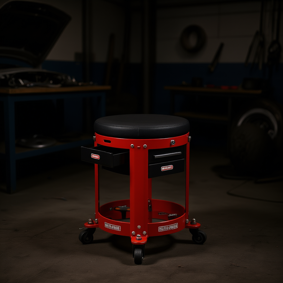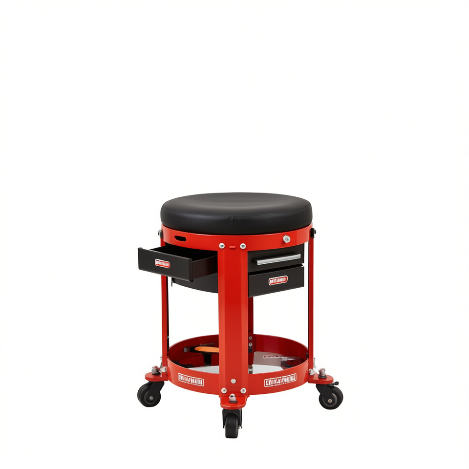 Sgabello Meccanico con Ruote e Cassetti, Altezza 52cm, Struttura in Acciaio, Attrezzatura per Riparazioni