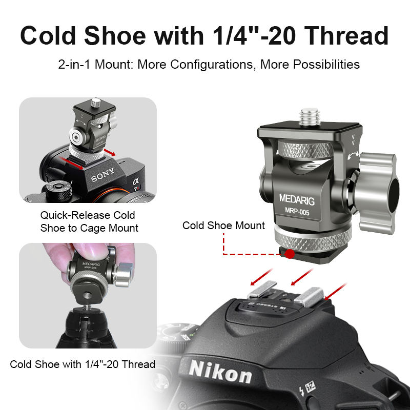 Medarig in lega di alluminio Monitor montaggio slitta 1/4 vite 360 girevole 180 inclinazione 5-7 "Monitor da campo Atomos Ninja V