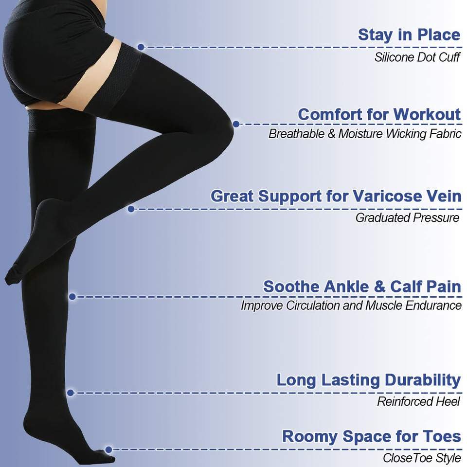 Medico grado 15-20 mmHg punta aperta coscia ad alta compressione calze a maglia tessitura puntino gambe