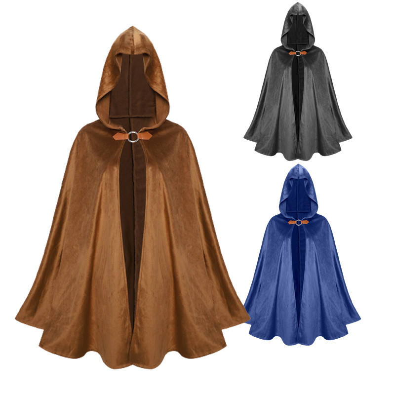 Medieval Cloak Men Retro Hooded Long Cape Coat Pirate Viking Cos Halloween Party Gothic Cosplay Costume Halloween Black Cloaks