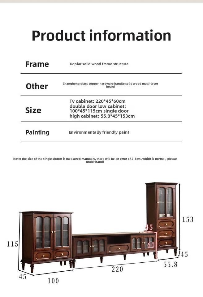 Cabinet TV in legno massello in stile medievale; Combinazione di tavolino da salotto; Soggiorno moderno di grande capacità