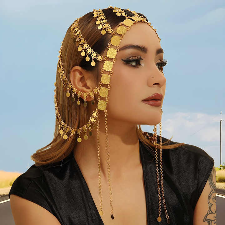 Medieval-style Arab Headwear Middle East and Europe Featuring Golden Alloy Tassels Headband-style Hair Chain