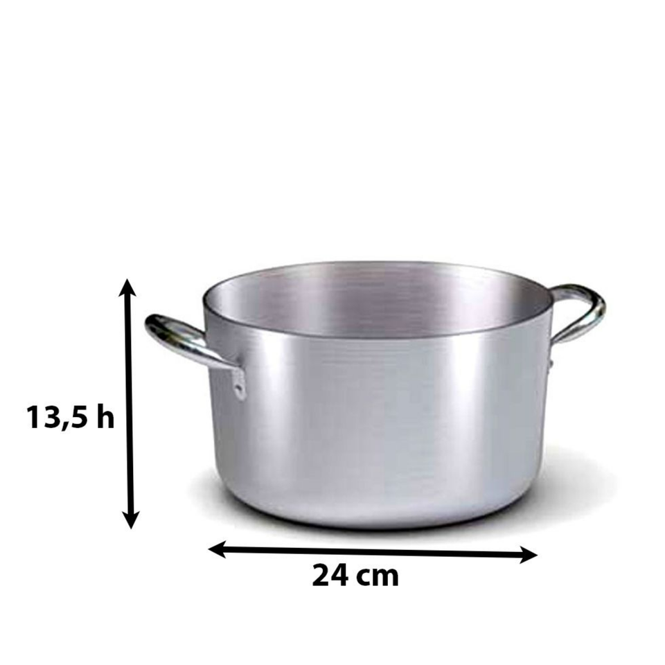 Pentola in Alluminio Media da 24cm con 2 Manici per Cucinare e Servire