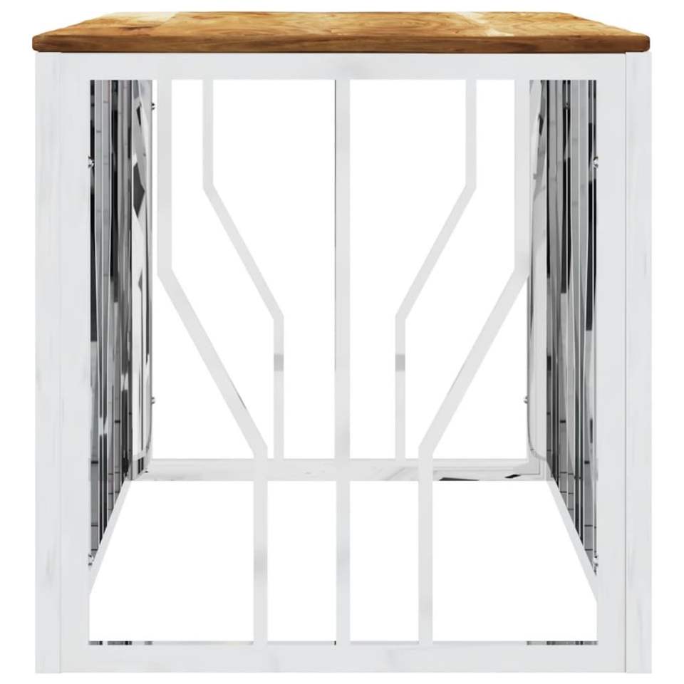 Tavolino da Caffè in Legno di Acacia di Medie Dimensioni con Dettagli in Acciaio Inossidabile Argento