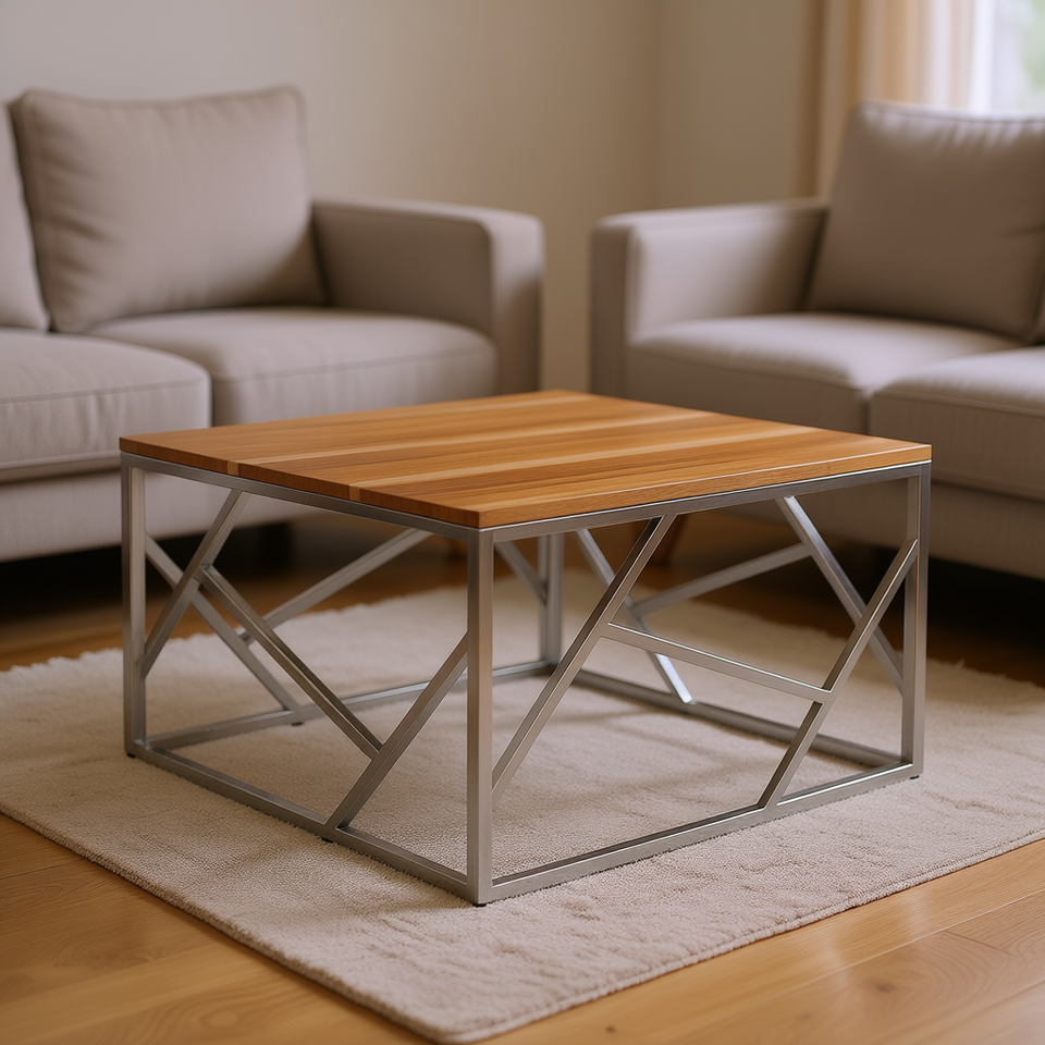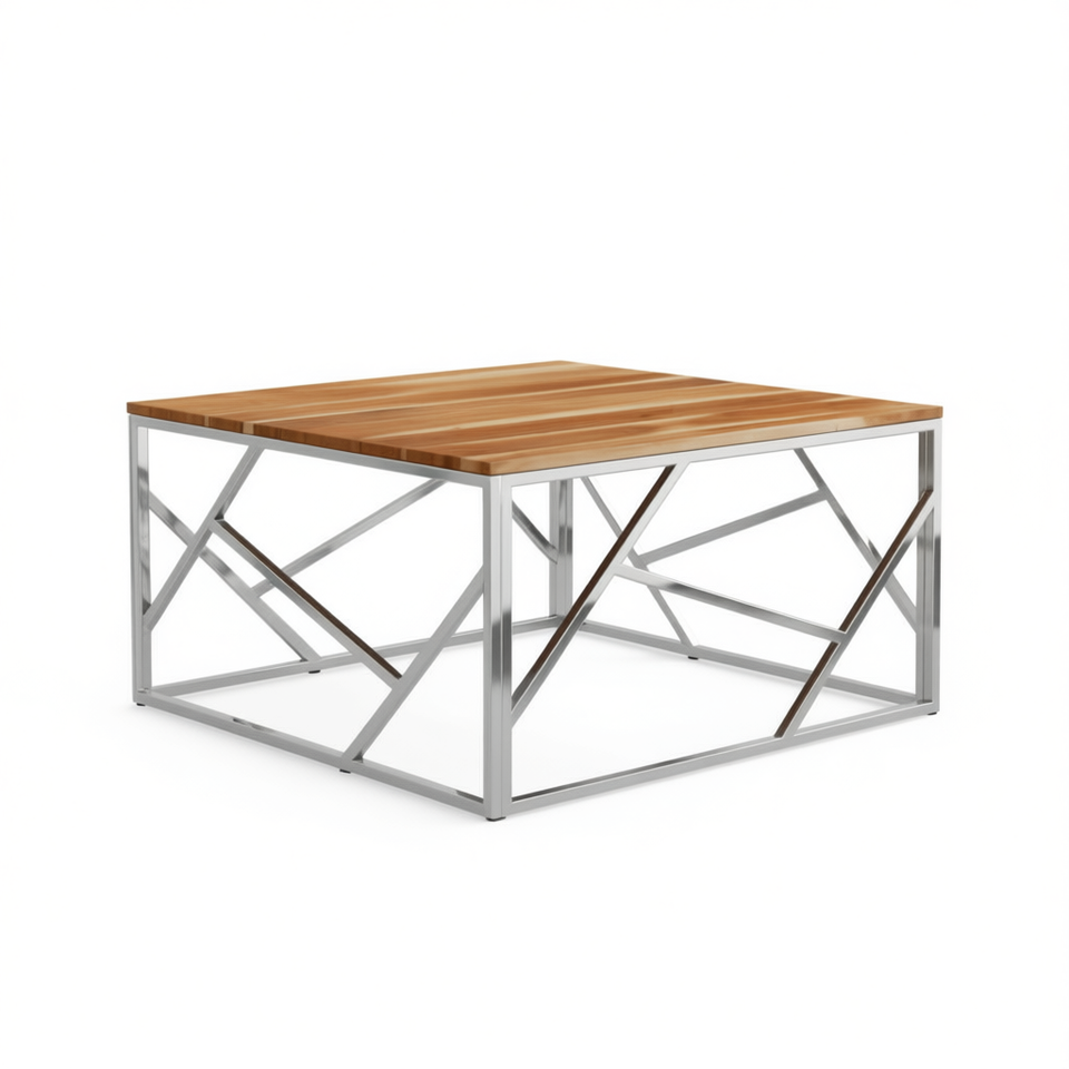 Acacia Wood Coffee Table Silver Stainless Steel Frame Modern Living Room Furniture