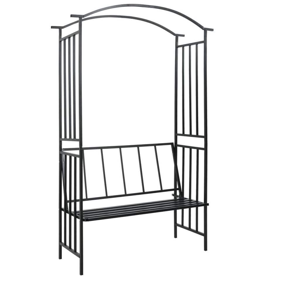 Medium Black Iron Garden Arch with Decorative Inlays Elegant Garden Set