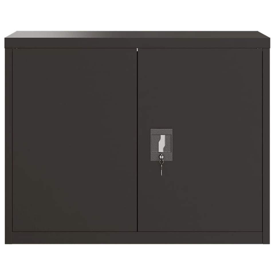 Armadietto Portadocumenti in Acciaio Verniciato a Polvere Nera con 1 Cassetto e Serratura a Chiave, Arredamento per Ufficio