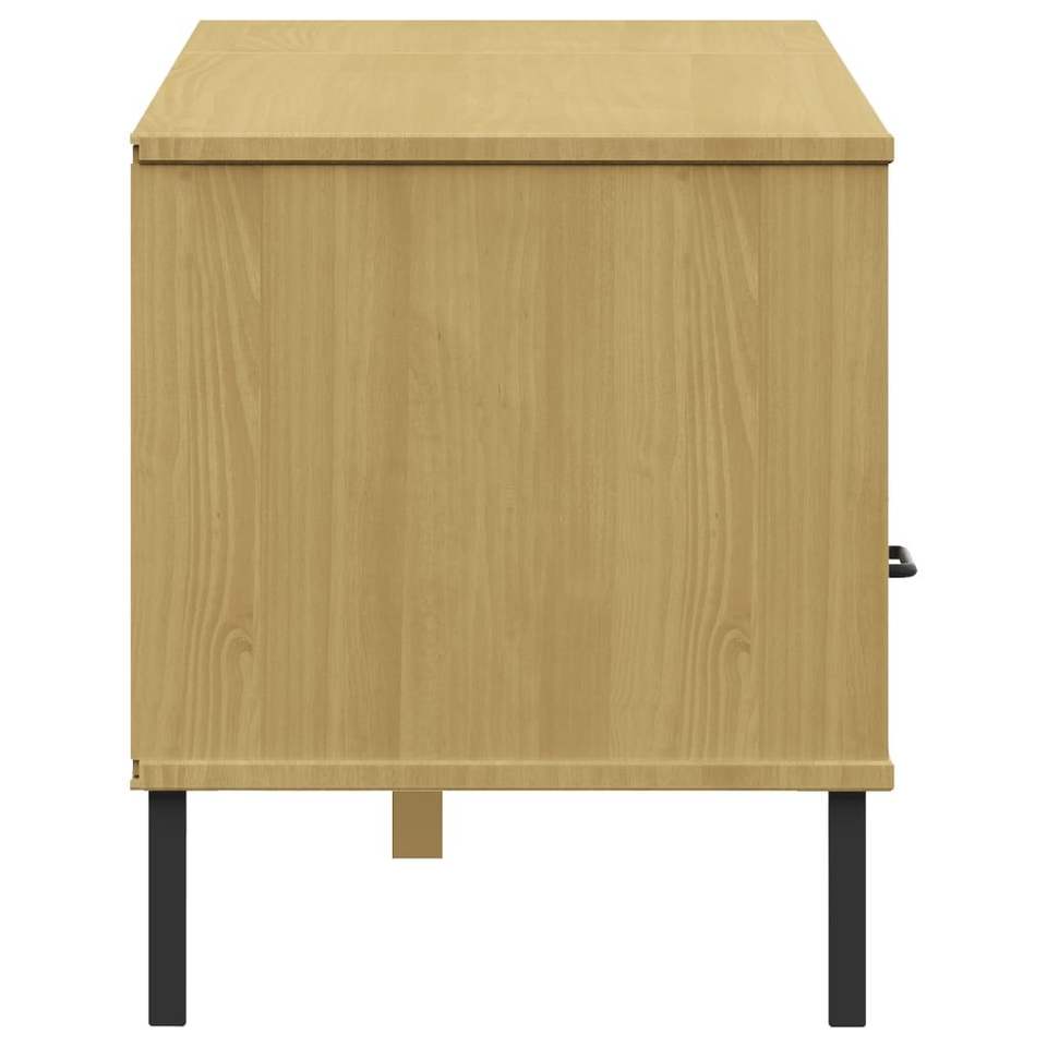 Mobile TV in legno massello di pino marrone medio e metallo per soggiorno