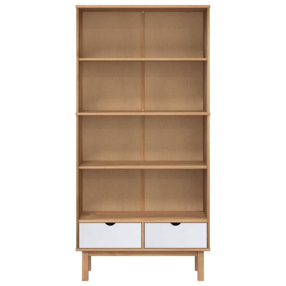 Modern Pine Wood Bookcase 4 Shelves With Drawers Living Room Furniture