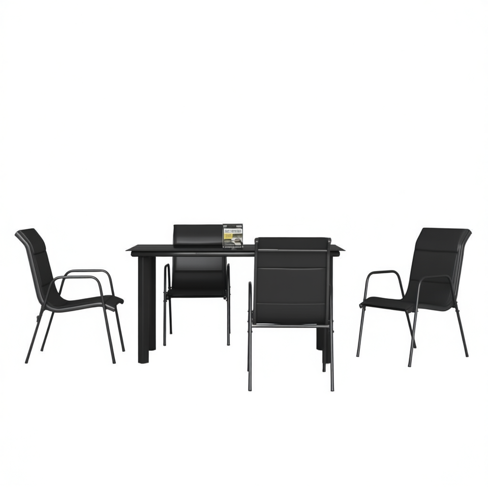 Set da Pranzo da Giardino in Acciaio Verniciato a Polvere Nera, 4 Posti, Arredamento Esterno Contemporaneo dal Design Durevole