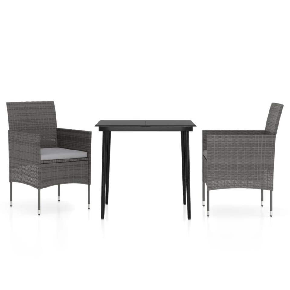 Set da pranzo da giardino in rattan PE grigio e nero, 2 posti, mobili da esterno dal design contemporaneo con struttura in acciaio